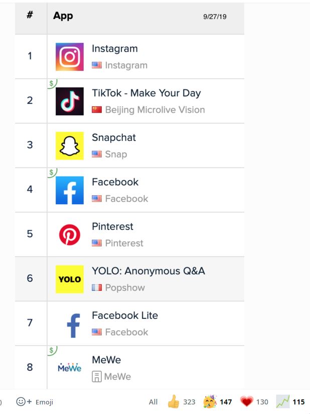 Top Ranking Social Apps in the Google Play Store in the USA – September 27-28
